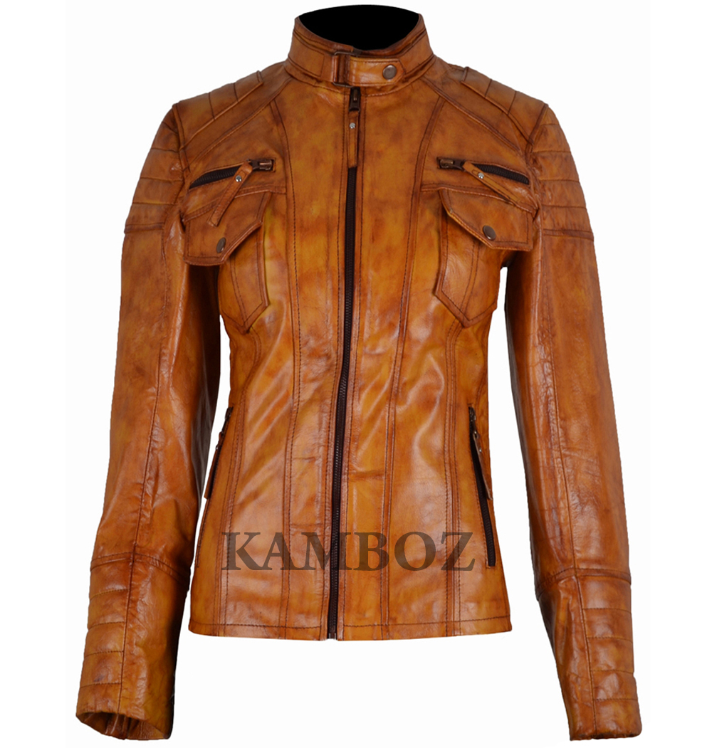 The addition in our jackets collection that is Retro Vintage Shiza Women’s Biker Real Leather Jacket With Waxed with made by Sheep leather. Inside is lined with comfortable viscose fabric with two inside pockets.